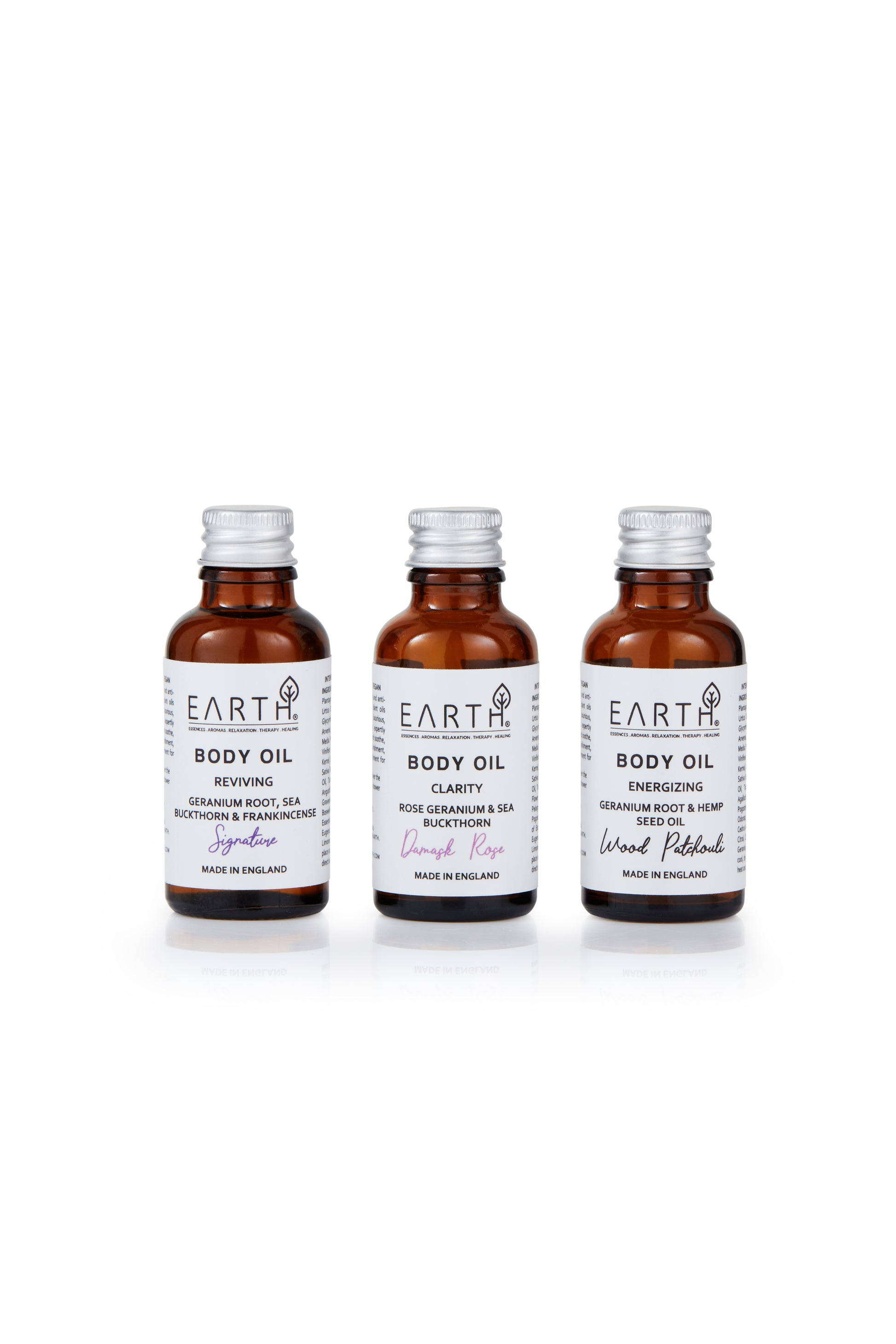 Body Oil Trio: Signature, Damask Rose and Wood & Patchouli Oil - 30ML each.